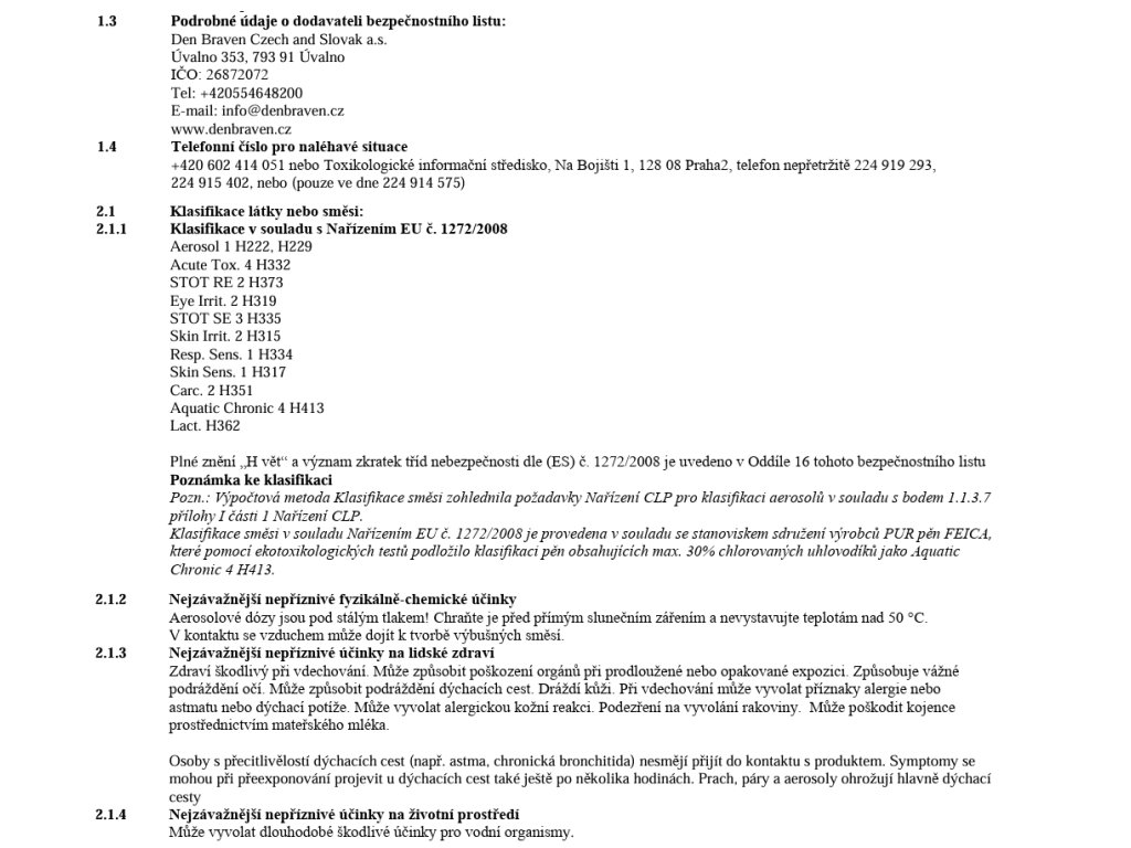 | Výrobní společnost : | Den Braven Czech and Slovak a.s. |