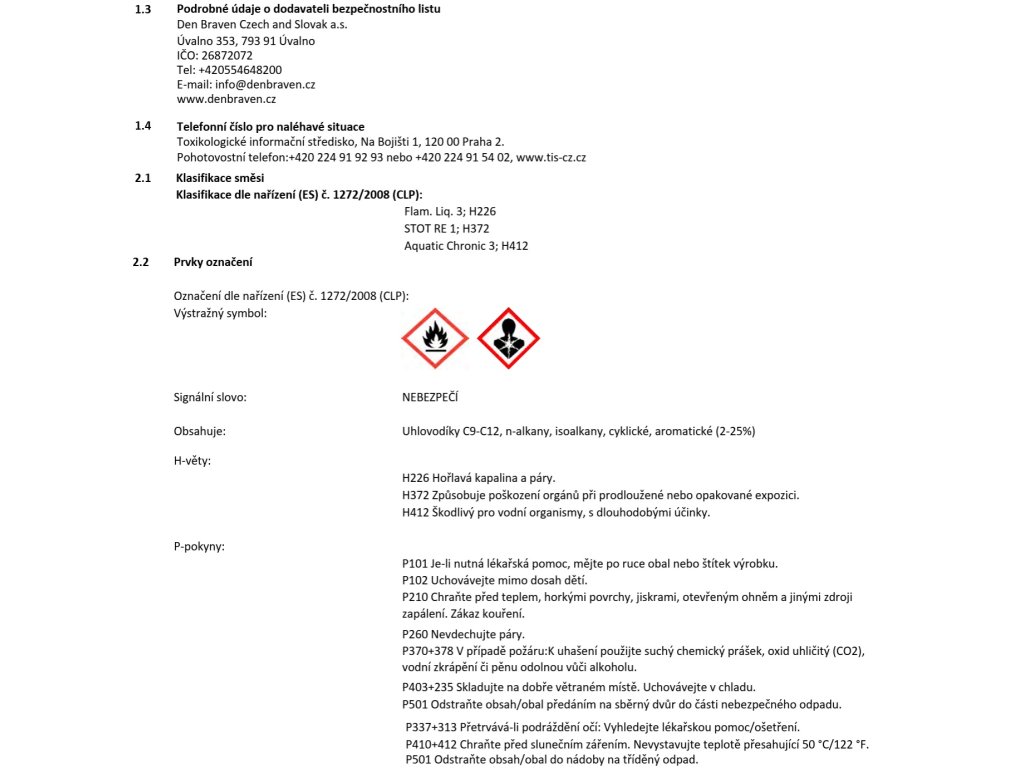 Výrobní společnost : | Den Braven Czech and Slovak a.s. |