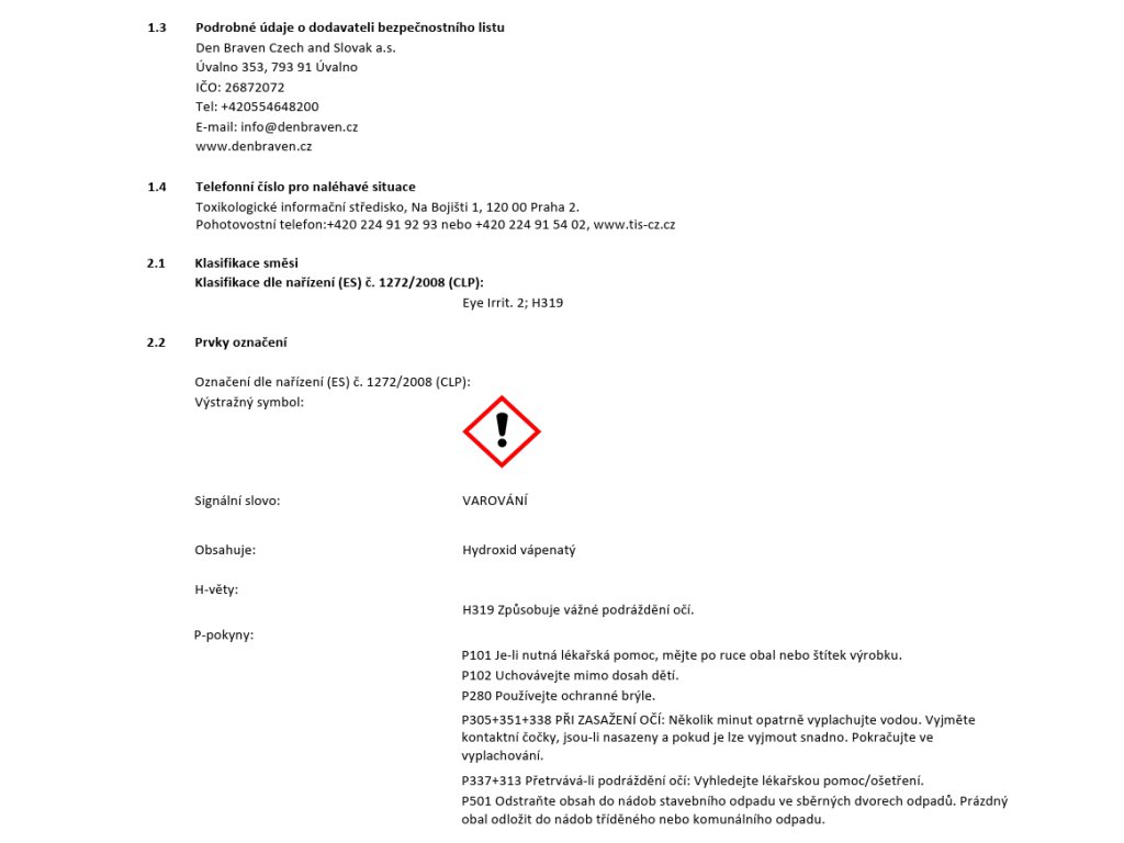 Výrobní společnost : | Den Braven Czech and Slovak a.s. |