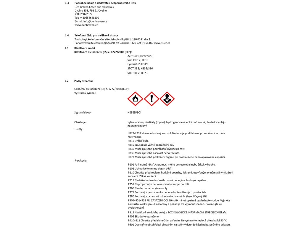 | Výrobní společnost : | Den Braven Czech and Slovak a.s. |