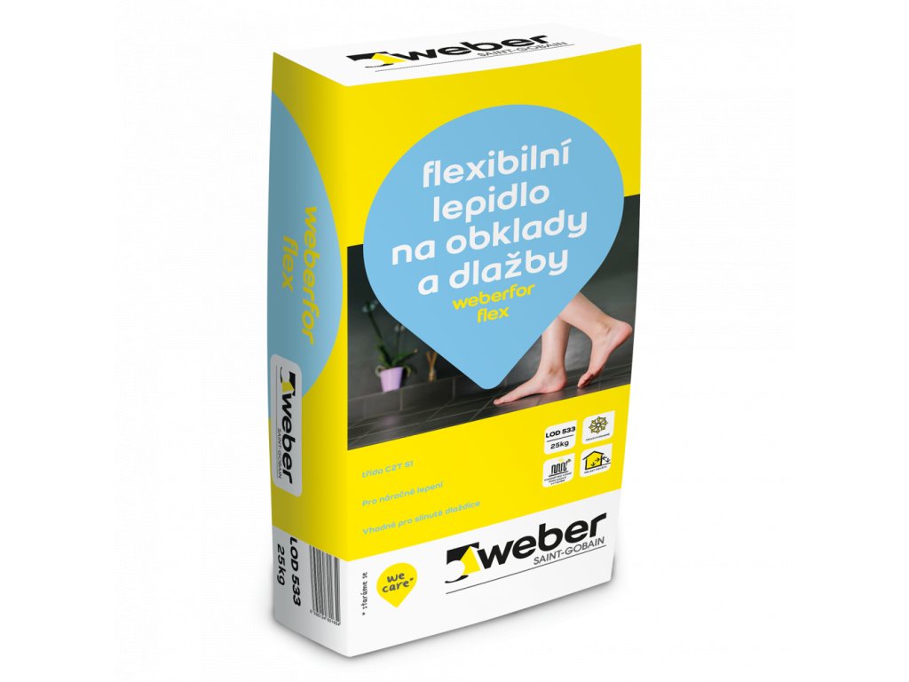 Flexibilní lepidlo C2T S1 na obklady a dlažby Weberfor flex 25 kg