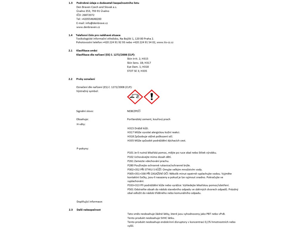 | Výrobní společnost : | Den Braven Czech and Slovak a.s. |