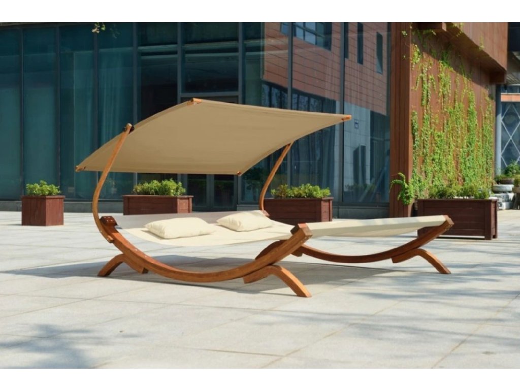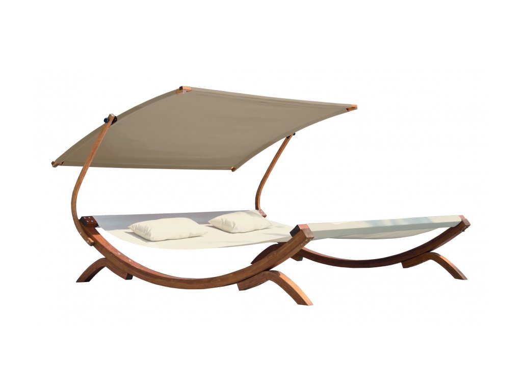 Luxusní lehátko určené pro 2 osoby se stane ozdobou vaší zahrady a každý vám ho bude dozajista závidět. Velkou přednostní lehátka GREENLAND je jeho jedinečný design v němž se snoubí elegantní barva potahu - béžovo/hnědá s lakovaným modřínovým dřevem. Lehátko je díky použití kvalitního, lakovaného, modřínového dřeva a pevných tkanin určené i k venkovnímu použití.