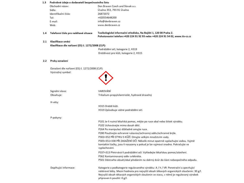 Výrobní společnost : | Den Braven Czech and Slovak a.s. |