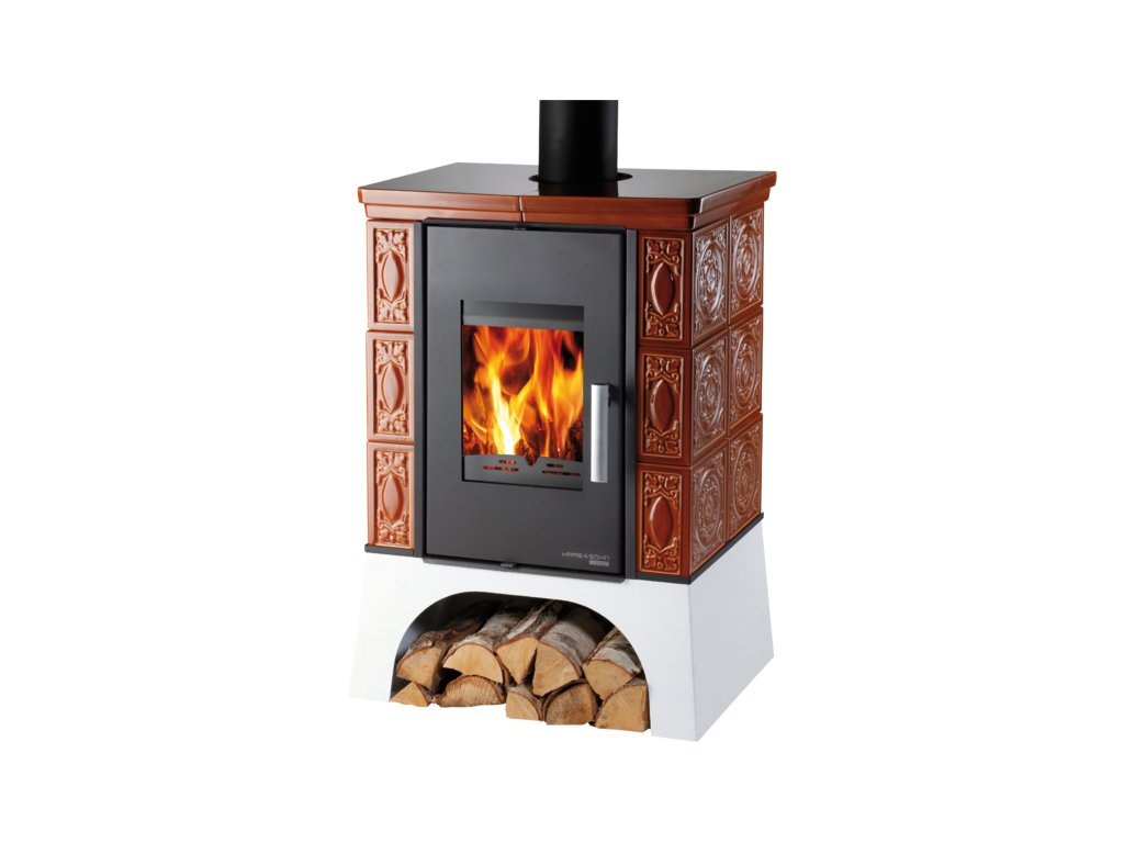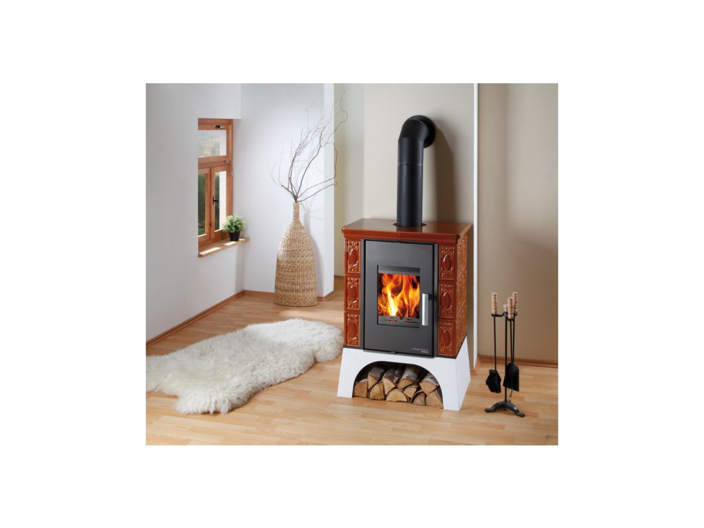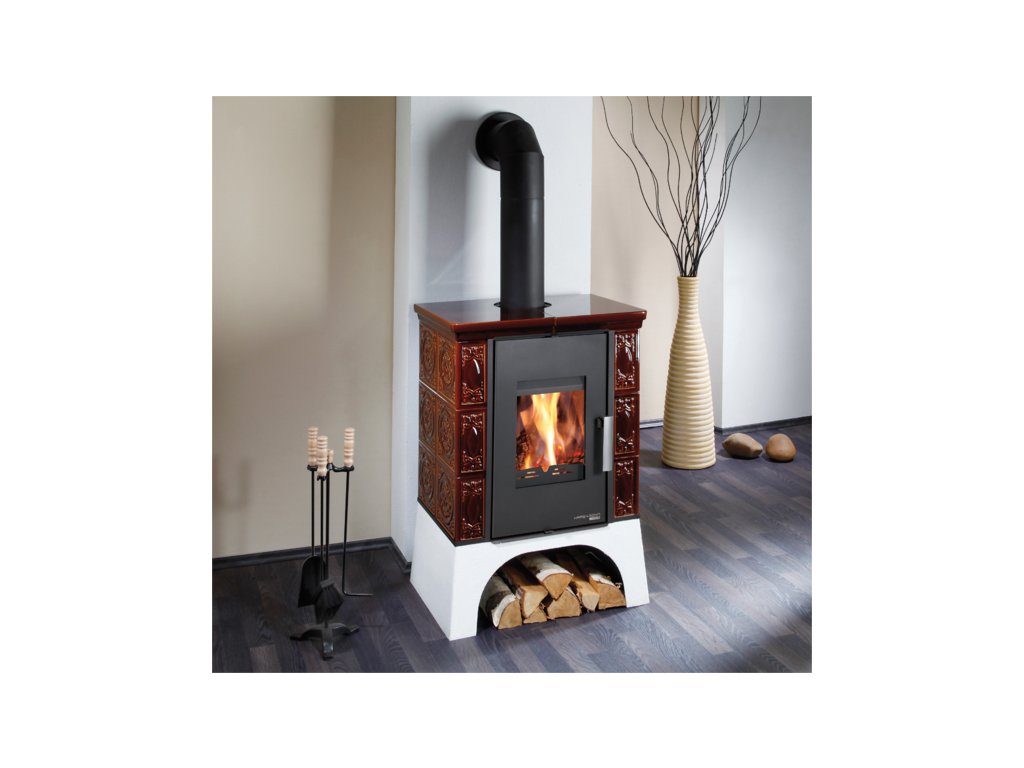 Hnědá kamna kachlová s výměníkem a s vychlazovací smyčkou