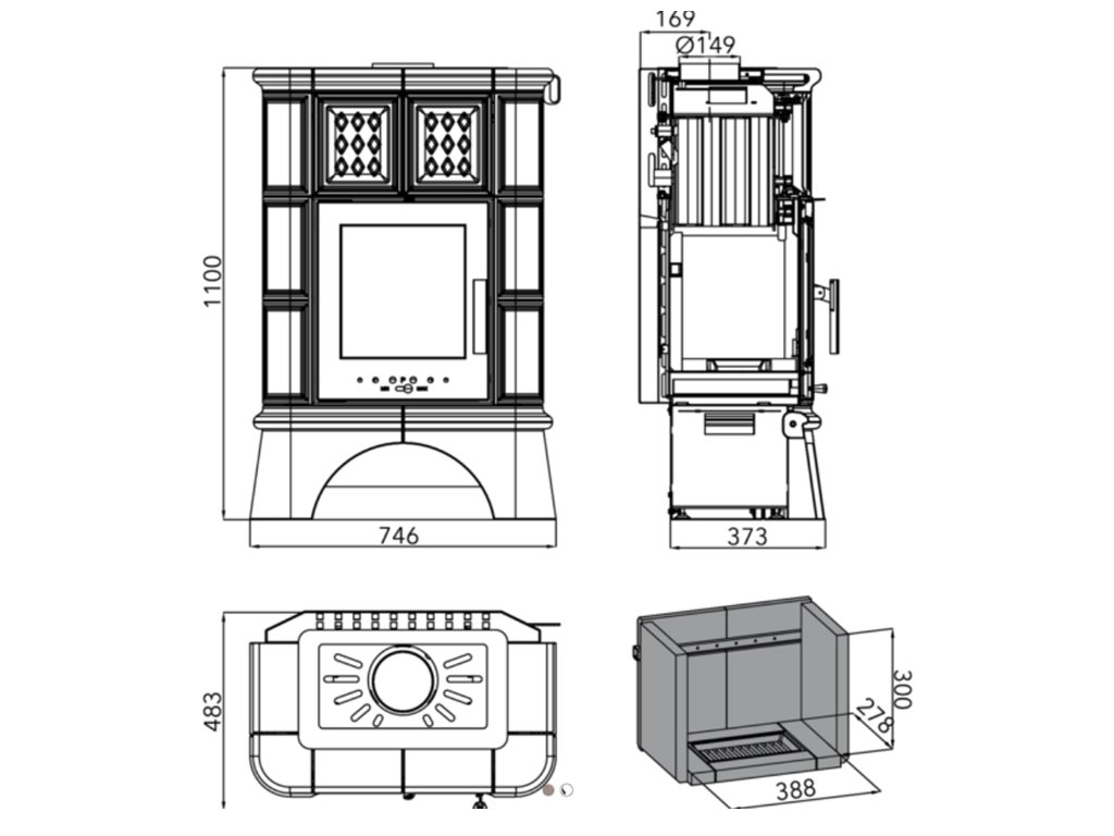 Krbová kamna HAAS+SOHN TREVISO II jsou vyrobená z kvalitního ocelového plechu s kachlovým obložením. Kamna se vyrábí ve dvouplášťovém provedení. Ocelové topeniště je vyložené šamotem, rošt je litinový. Vnější plášť kamen je tvořen masivními kachlemi. Kamna o výkonu 2,7 až 8 kW a účinností 80,4 % jsou vhodná pro vytápění interiérů do velikosti až 148 m3. Kamna jsou doplněna o sokl v barvě kachlů. Kamna se dodávají ve verzi s odpojitelným teplovodním výměníkem. Popelník je umístěn pod litinovým roštem – dostanete se k němu po otevření dvířek. Přikládací dvířka jsou osazena speciálním velkoplošným sklem, které je schopno odolávat teplotám až 800°C. Díky kachlovému obkladu bude teplo z kamen sálat ještě dlouho po vyhasnutí ohně. Krbová kamna mají terciární spalování. Terciární spalování -přívod vysoce předehřátého vzduchu do spalovací komory, který velmi napomáhá kvalitnějšímu spalování zplodin, snižuje obsah škodlivin ve spalinách a zvyšuje účinnost kamen.