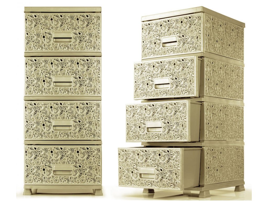 Elegantní plastová komoda na prádlo nebo třeba kosmetické či čistící potřeby určená pro domácnosti, které hledají nápaditý design ve spojení s velmi přijatelnou cenou plastových košíků.