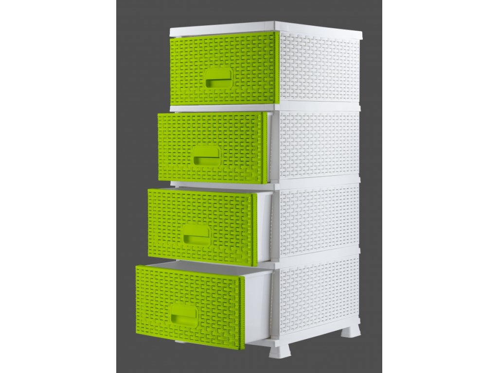 Mega Plast, RAF komoda polyratan, se zásuvnými šuplíky, 44 x 37 x 90,5 cm, bílá/sv. zelená