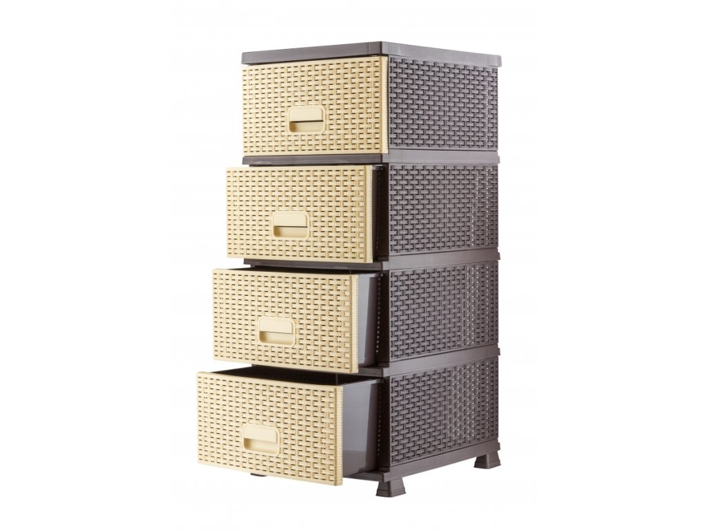Mega Plast, RAF komoda polyratan, se zásuvnými šuplíky, 44 x 37 x 90,5 cm, wenge/krém