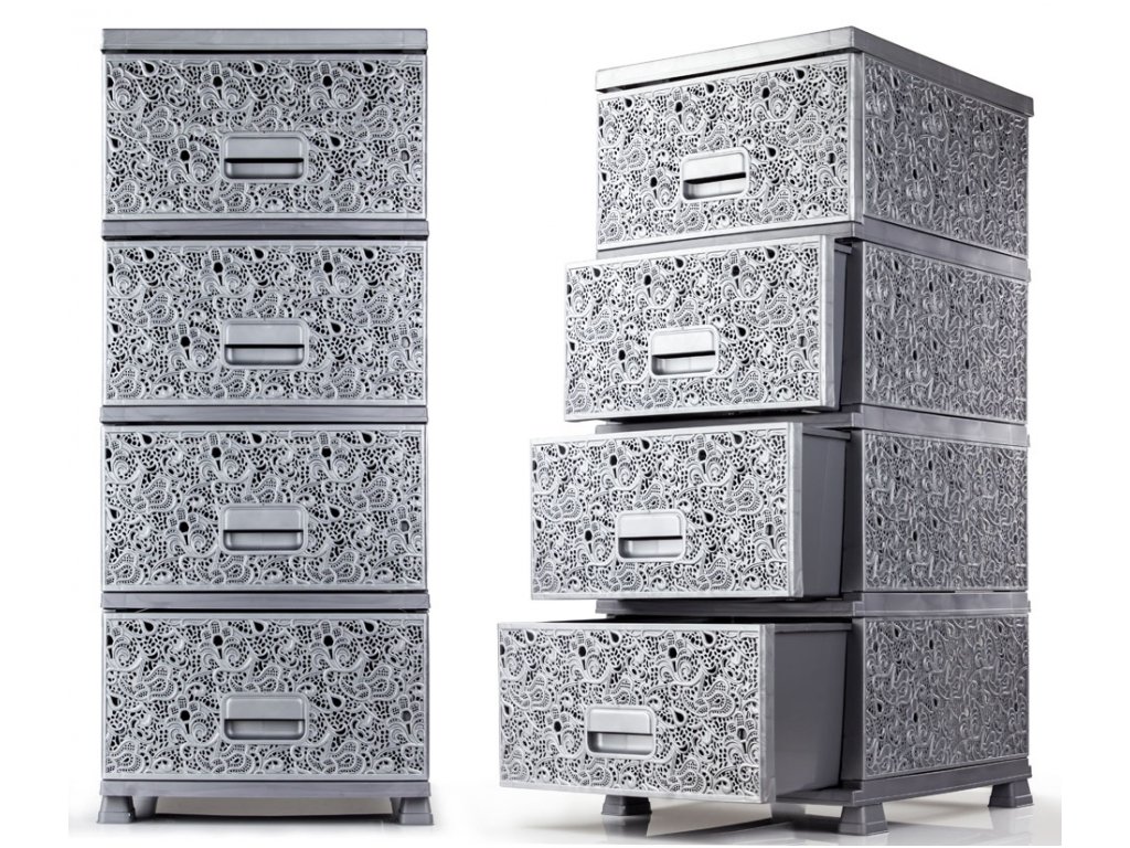 Elegantní plastová komoda na prádlo nebo třeba kosmetické či čistící potřeby určená pro domácnosti, které hledají nápaditý design ve spojení s velmi přijatelnou cenou plastových košíků.