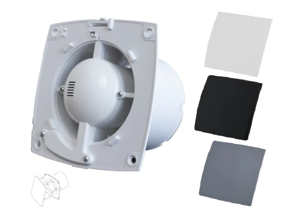 Koupelnový ventilátor s klapkou zajišťuje, že vzduch proudí pouze jedním směrem. Zabraňuje vnikání studeného vzduchu a hmyzu. Koupelnový ventilátor fi 100 se montuje na odsávací hadici o průměru 100 mm. Koupelnový ventilátor s časovačem bude fungovat tak dlouho, jak jste nastavili časovač.