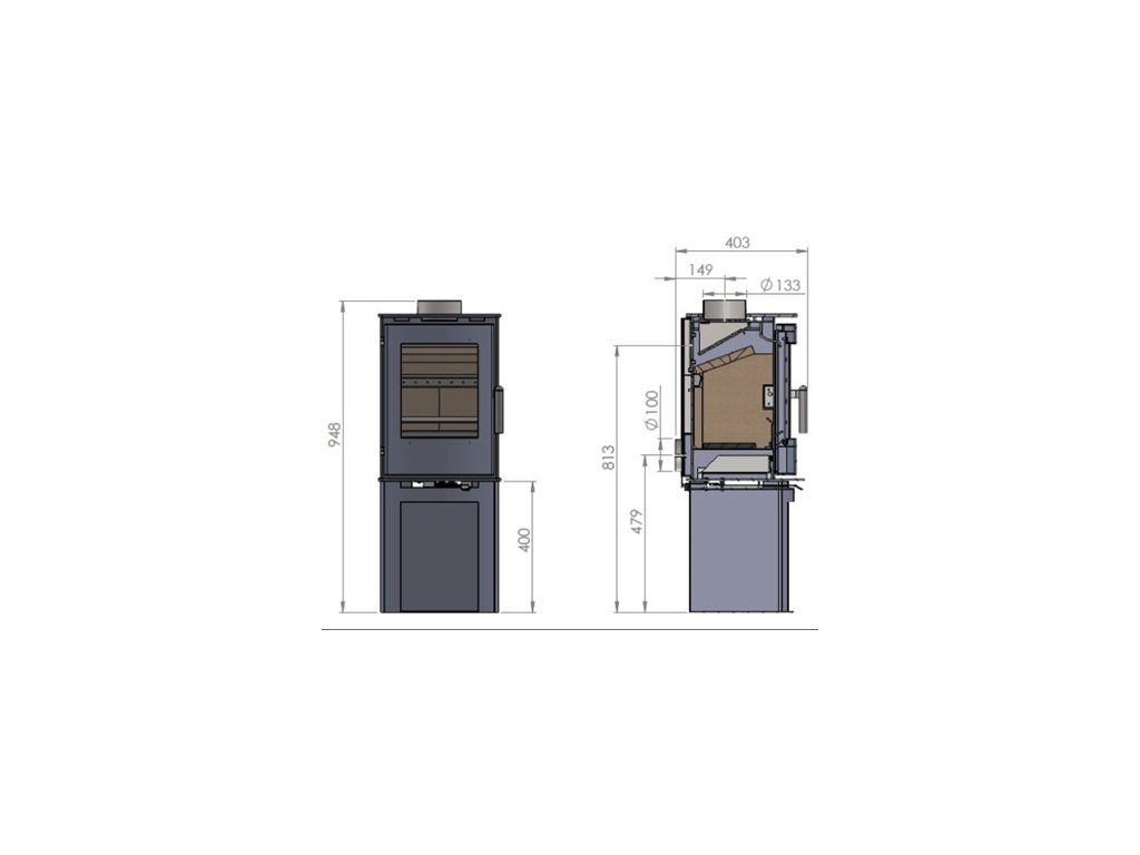 - ve spodní části kamen je úložný prostor na dřevo