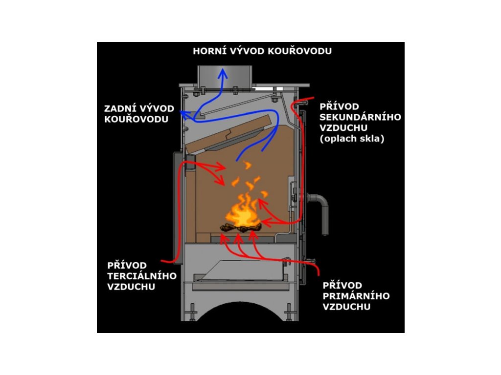 2. Dobrá účinnost a ekonomické topení — Spalování je navrženo tak, aby bylo účinné a efektivní, s použitím systémů jako trojí přívod vzduchu a spalování dřevoplynů, což pomáhá snížit spotřebu paliva a optimalizovat teplo.