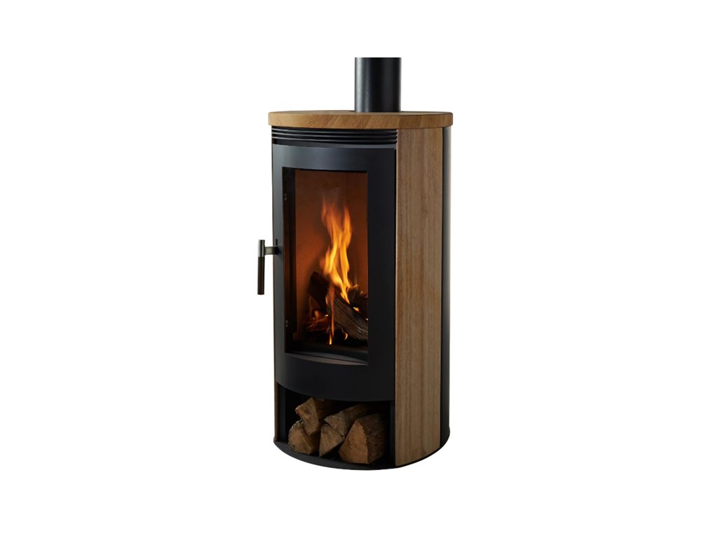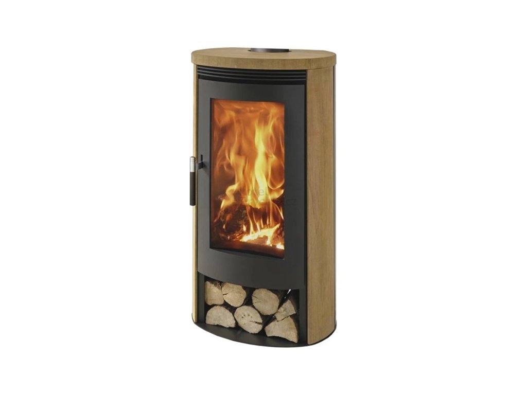 Ocelový plášť kamen je konstrukčně jednoduchý a vysoce funkční. Systém oplachu skla. Předehřátý vzduch účinně předchází vytváření nánosů na skle dvířek ohniště. Ve spodní části kamen je úložný prostor na dřevo.