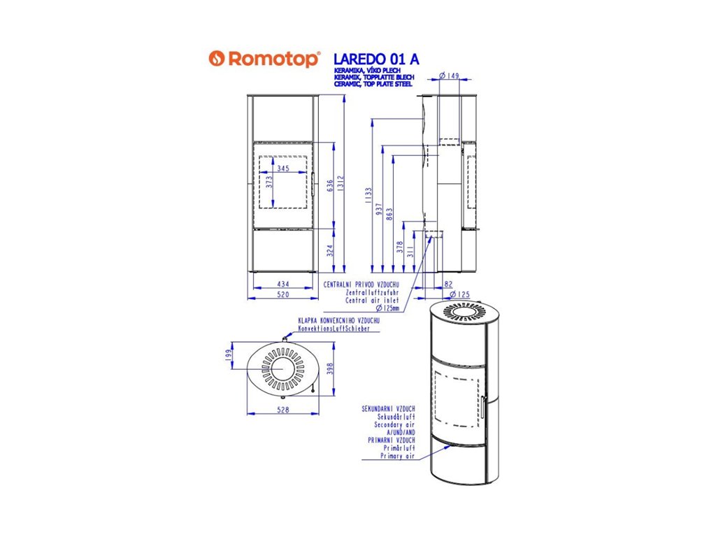 Krbová kamna ROMOTOP LAREDO 01 jsou vyrobená z kvalitní oceli. Účinnost kamen je 80,53 %. Jmenovitý výkon 4 kW, regulovatelný výkon 2-6,5 kW. Kamna v kombinaci elegantního designu, úsporného provozu a dlouhotrvajícího tepla s akumulací. Tento model je ideální volbou pro moderní i klasické interiéry, kde se stane nejen zdrojem příjemného tepla, ale i dominantním designovým prvkem. Krbová kamna jsou navržena pro ty, kdo hledají efektivní a zároveň estetický způsob vytápění. Díky speciálním akumulačním prstencům dokáží tato kamna "uložit" teplo z hoření a následně ho postupně uvolňovat do místnosti i dlouhé hodiny po vyhasnutí plamene. Výsledkem je stabilní tepelná pohoda a výrazná úspora paliva. Oválný tvar kamen působí ladně a nadčasově. Velké prosklení dvířek vám poskytne uklidňující pohled na tančící plameny a vytvoří v místnosti jedinečnou atmosféru. Intuitivní ovládání jedním regulačním prvkem a systém centrálního přívodu vzduchu (CPV) zajišťují optimální a čisté spalování. Dvířka kamen jsou vyplněná velkoplošným rádiusovým sklem, které umocňuje pohled z několika úhlů místnosti. Předehřátý sekundární vzduch zajišťuje čistotu skla. Šamotovou vyzdívku topeniště doplňuje litinový rošt. Do kamen lze dokoupit akumulační prvky, které sálají teplo až 5,5 h. Primární i sekundární vzduch se ovládají jedním táhlem. Ve spodní části kamen je praktický uzavíratelný dřevník.