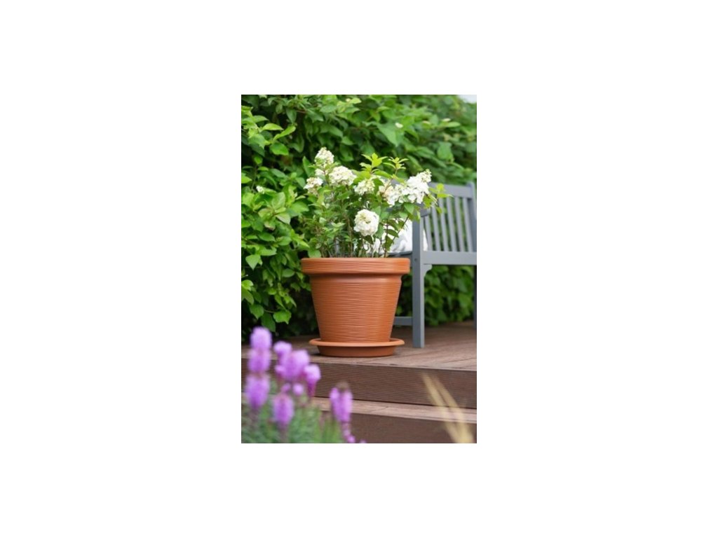 Moderní plastový květináč AGAWA DLUTO vroubek s klasickým vzhledem a se strukturovaným designem který působí velmi luxusně. Součástí tohoto květináče je vyjímatelná plastová vložka v černé barvě. Květináč je vhodný jak do interiéru, tak do exteriéru. Do černé plastové vložky je možné udělat otvor a přebytečná voda bude zachycena v plastovém obale.