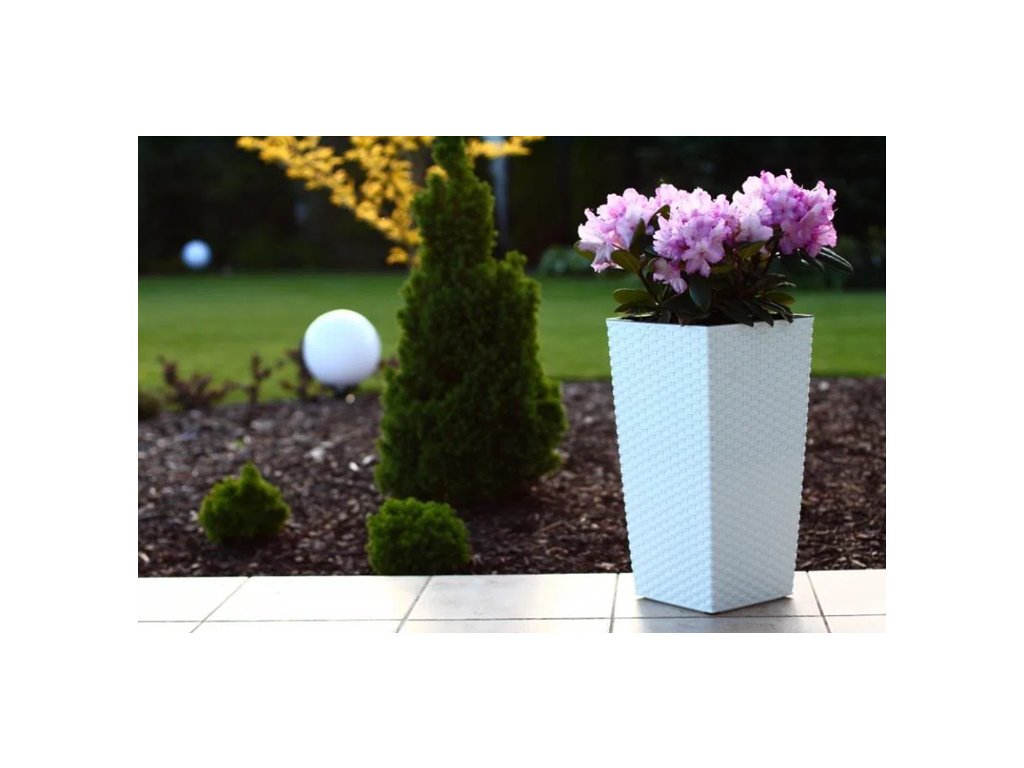 Květináč se strukturovaným designem, který působí velmi luxusně. Moderní vysoký plastový květináč FINEZIA - ratan s matným povrchem bílé barvy. Součástí tohoto květináče je vyjímatelná plastová vložka v černé barvě. Květináč je vhodný jak do interiéru, tak do exteriéru. Do černé plastové vložky je možné udělat otvor a přebytečná voda bude zachycena v plastovém obale.