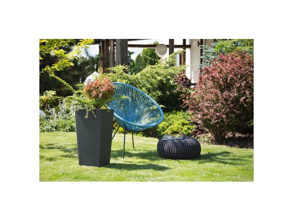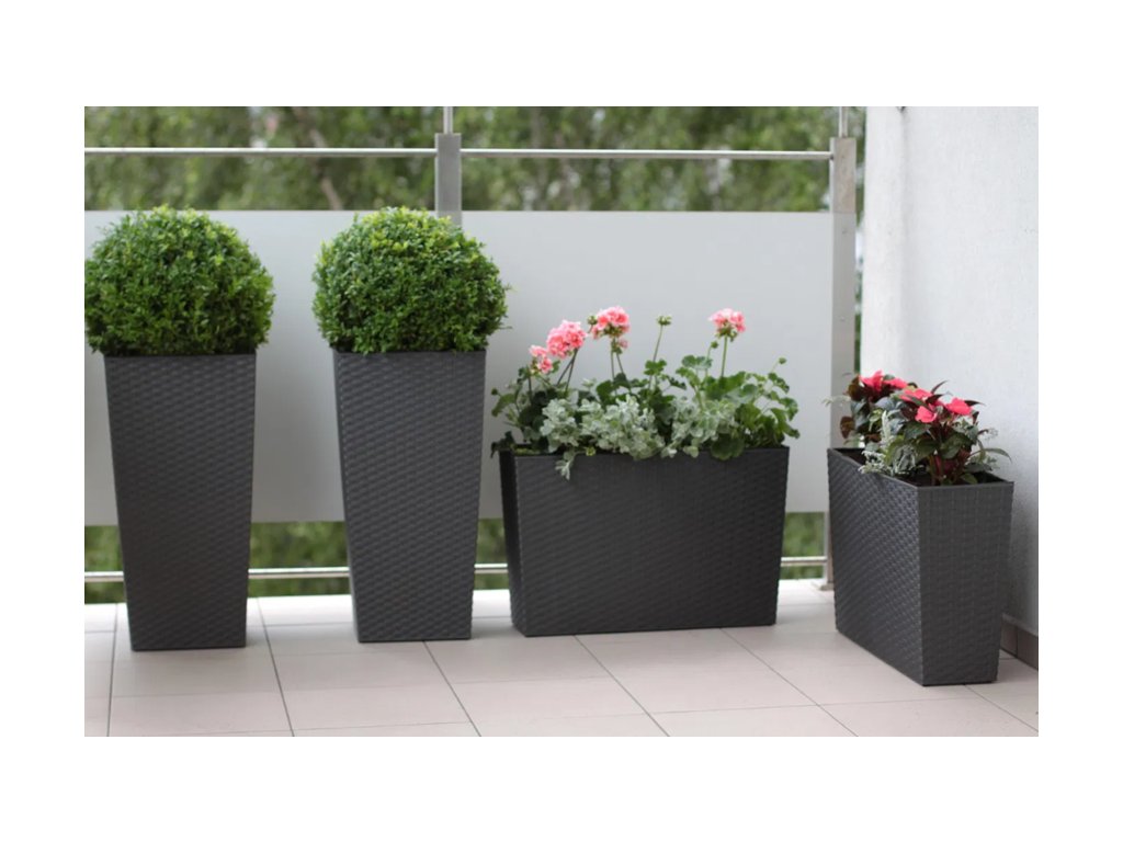 Designový vysoký samozavlažovací květináč grafitový ratan