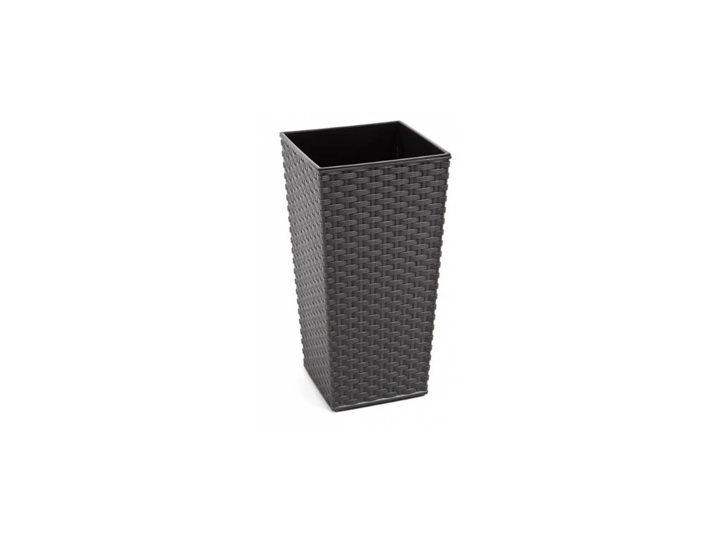 Květináč se strukturovaným designem, který působí velmi luxusně. Moderní vysoký plastový květináč FINEZIA - ratan s matným povrchem grafitový. Součástí tohoto květináče je vyjímatelná plastová vložka v černé barvě. Květináč je vhodný jak do interiéru, tak do exteriéru. Do černé plastové vložky je možné udělat otvor a přebytečná voda bude zachycena v plastovém obale.