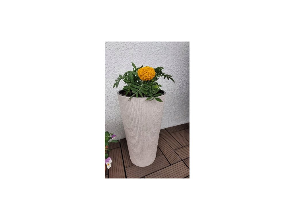 Moderní vysoký plastový květináč LILIA JUMPER. Květináč se strukturovaným designem, který působí velmi luxusně. Součástí tohoto květináče je vyjímatelná plastová vložka v černé barvě. Rostliny se zasazují do černé vložky která se vloží do vnějšího květináče. Do černé plastové vložky je možné udělat otvor a přebytečná voda bude zachycena v plastovém obale. Barvy jsou odolné vůči UV záření. Květináč je vhodný jak do interiéru tak do exteriéru.