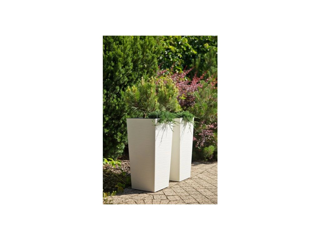 Květináč se strukturovaným designem, který působí velmi luxusně. Moderní vysoký plastový květináč FINEZIA krémové barvy - matný povrch s vroubkovanou strukturou. Součástí tohoto květináče je vyjímatelná plastová vložka v černé barvě. Květináč je vhodný jak do interiéru, tak do exteriéru. Do černé plastové vložky je možné udělat otvor a přebytečná voda bude zachycena v plastovém obalu.