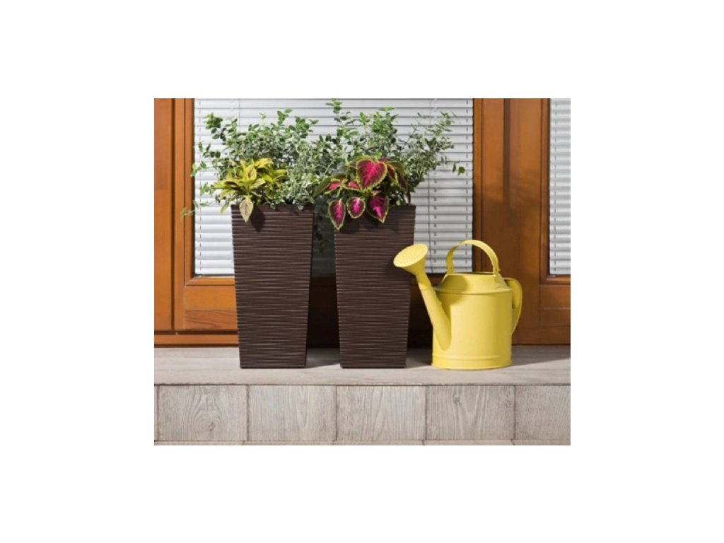 Květináč se strukturovaným designem, který působí velmi luxusně. Moderní vysoký plastový květináč FINEZIA v barvě moka - matný povrch s vroubkovanou strukturou. Součástí tohoto květináče je vyjímatelná plastová vložka v černé barvě. Květináč je vhodný jak do interiéru, tak do exteriéru. Do černé plastové vložky je možné udělat otvor a přebytečná voda bude zachycena v plastovém obalu.