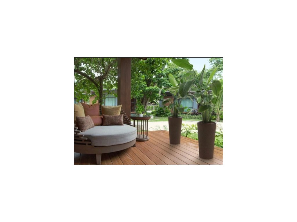 Moderní vysoký plastový květináč LILIA ECO DLUTO vroubek s příměsí až 40% dřeva v každém květináči. Květináč se strukturovaným designem, který působí velmi luxusně. Součástí tohoto květináče je vyjímatelná plastová vložka v černé barvě. Rostliny se zasazují do černé vložky která se vloží do vnějšího květináče. Do černé plastové vložky je možné udělat otvor a přebytečná voda bude zachycena v plastovém obale. Barvy jsou odolné vůči UV záření. Květináč je vhodný jak do interiéru tak do exteriéru.