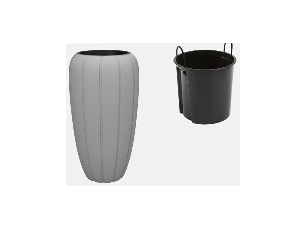 Květináč se strukturovaným designem, který působí velmi luxusně. Moderní vysoký plastový květináč GAJA - vroubek s matným povrchem v šedé barvě. Součástí tohoto květináče je vyjímatelná plastová vložka v černé barvě. Květináč je vhodný jak do interiéru, tak do exteriéru. Do černé plastové vložky je možné udělat otvor a přebytečná voda bude zachycena v plastovém obale.