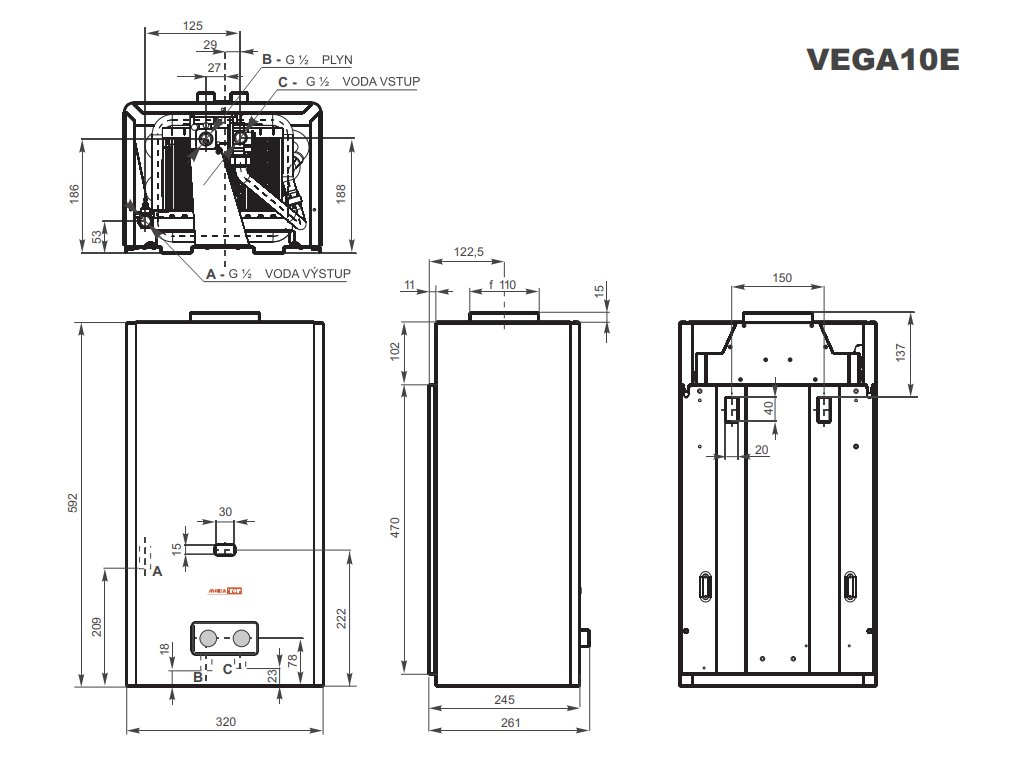 MORA-Top Vega 10E plynový průtokový ohřívač 17,3kW bateriové zapalování