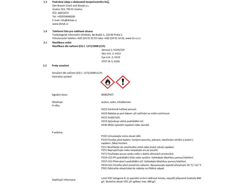 Výrobní společnost : | Den Braven Czech and Slovak a.s. |