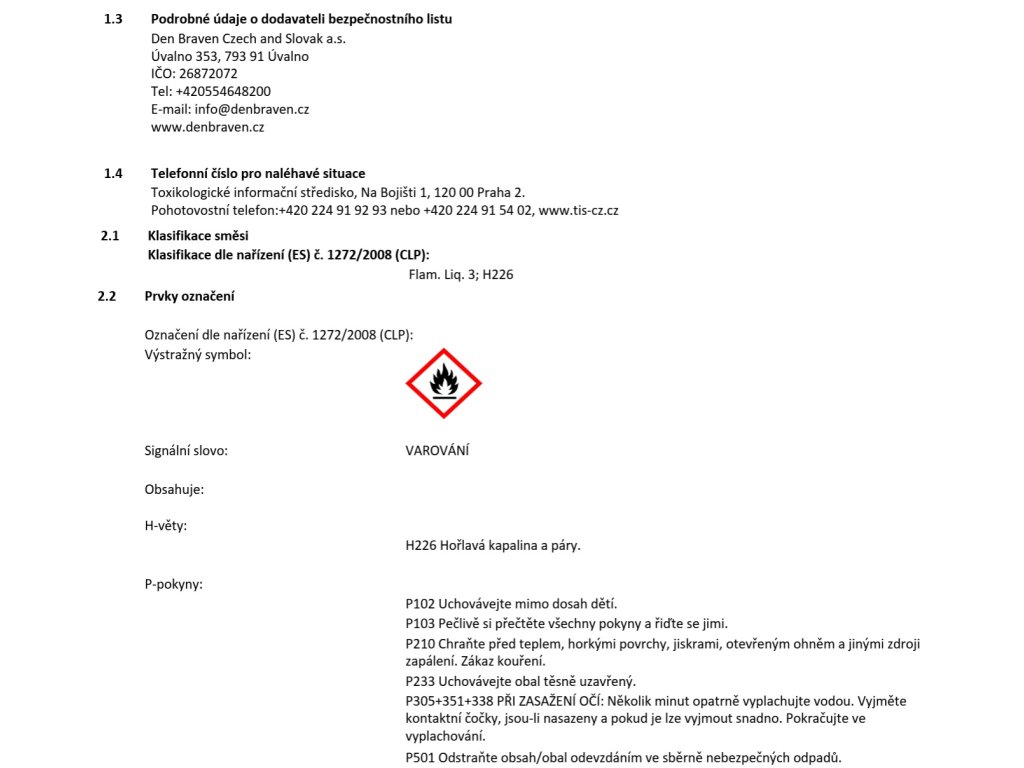 | Výrobní společnost : | Den Braven Czech and Slovak a.s. |