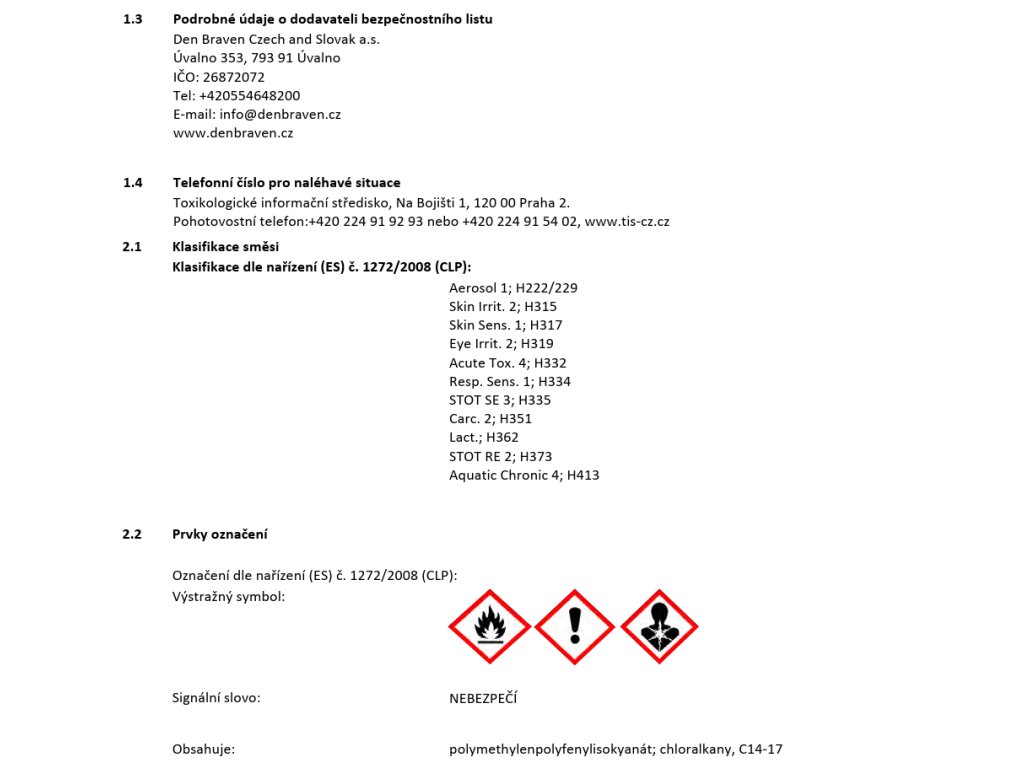 | Výrobní společnost : | Den Braven Czech and Slovak a.s. |