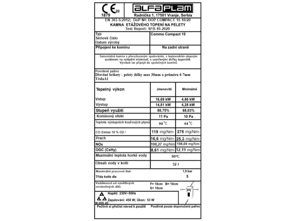 | Výrobní společnost : | Alfa-Plam D.O.O. |