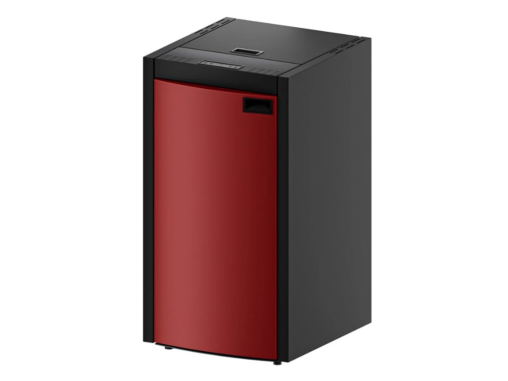Kompaktní kotel o výkonu 15 kW je navržen tak, aby zabíral minimum místa – vejde se i do malé kotelny doma nebo do samostatné místnosti v bytě. Kotel na pelety je vhodný i pro podlahové vytápění s kompaktními rozměry přizpůsobenými potřebám menších bytových jednotek. Dobrá tepelná izolace kotle umožňuje vyšší energetickou účinnost a výkon dodávaný do vody. Ochranu proti přehřátí vody v kotli zajišťují vestavěné bezpečnostní termostaty. Rafinovaný design v tmavě černé barvě s vínovými akcenty dodává zařízení jedinečný charakter.