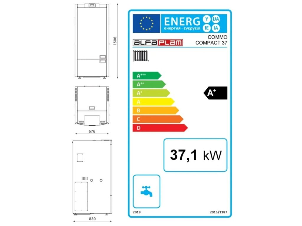 Kompaktní kotel o výkonu 37 kW. hodný i pro podlahové vytápění s kompaktními rozměry. Dobrá tepelná izolace kotle umožňuje vyšší energetickou účinnost a výkon dodávaný do vody. Ochranu proti přehřátí vody v kotli zajišťují vestavěné bezpečnostní termostaty. Rafinovaný design v tmavě černé barvě s vínovými akcenty dodává zařízení jedinečný charakter.