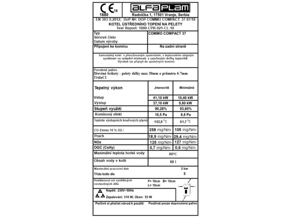 | Výrobní společnost : | Alfa-Plam D.O.O. |