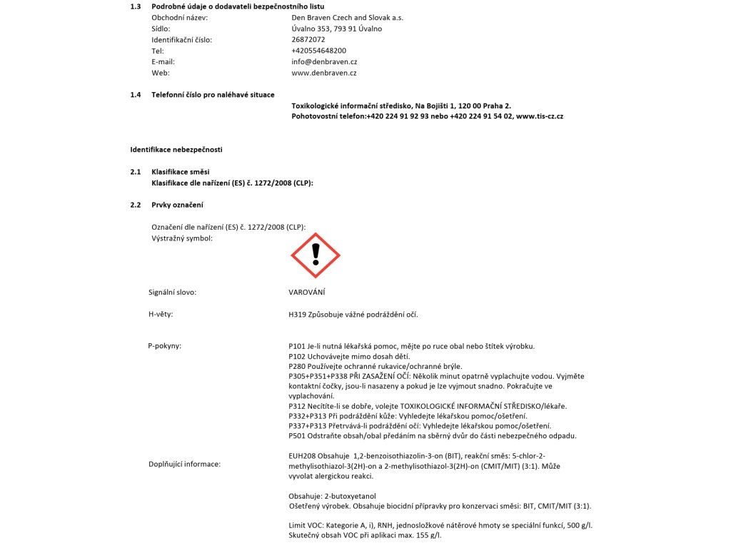 Výrobní společnost : | Den Braven Czech and Slovak a.s. |