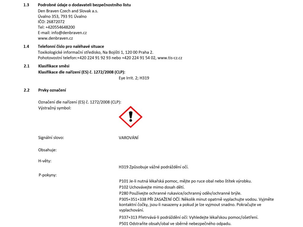 Výrobní společnost : | Den Braven Czech and Slovak a.s. |