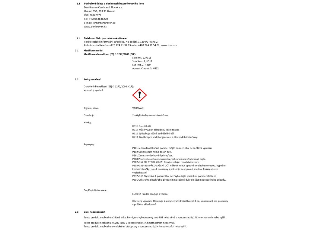 Výrobní společnost : | Den Braven Czech and Slovak a.s. |