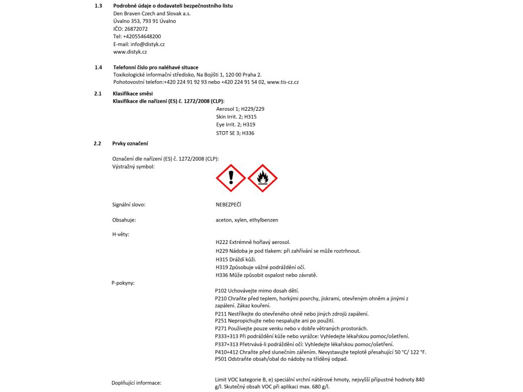 Výrobní společnost : | Den Braven Czech and Slovak a.s. |