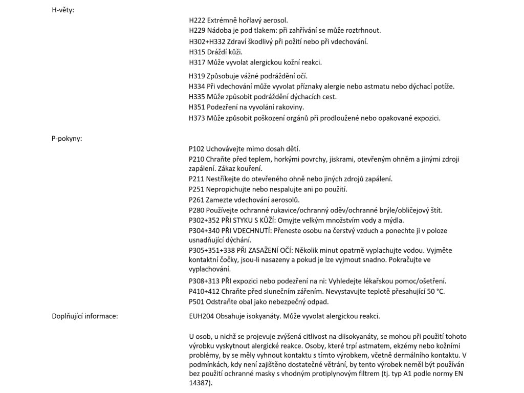 Jednosložková izolační PUR pěna s prokazatelnou odolností proti ohni a s dalšími doplňkovými charakteristikami. Používá se na vyplňování spár při montáži okenních a dveřních rámů. Jako protipožární izolace v příčkách a instalačních jádrech bytových domů.