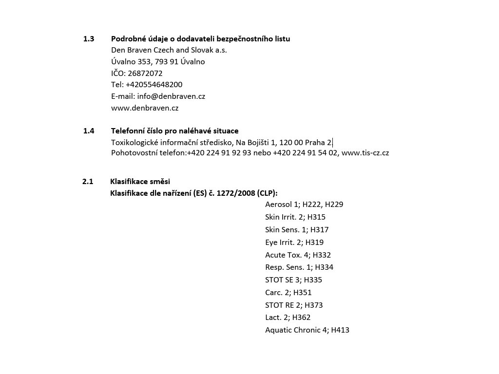 Výrobní společnost : | Den Braven Czech and Slovak a.s. |