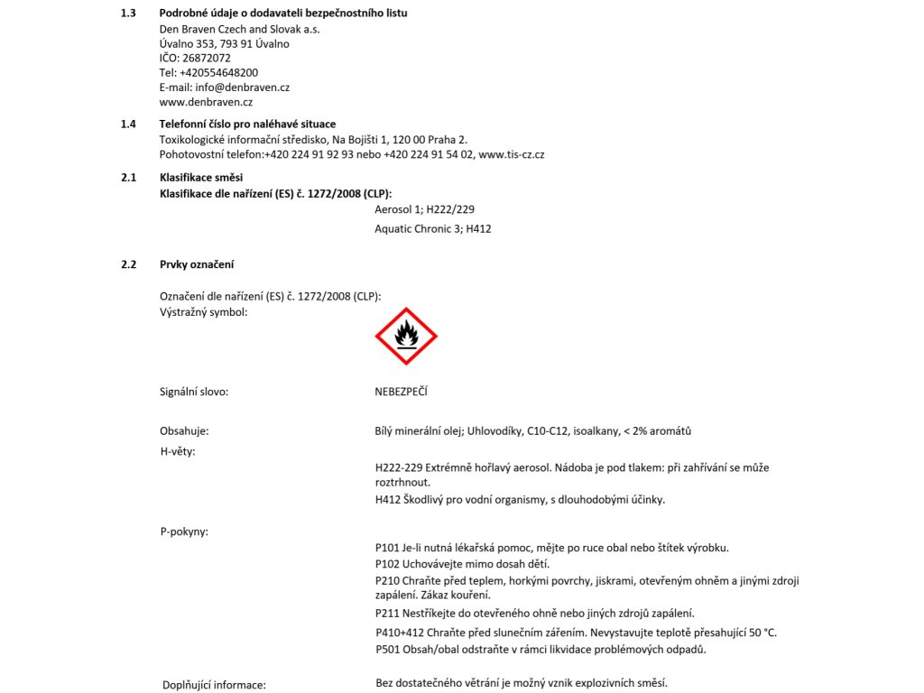| Výrobní společnost : | Den Braven Czech and Slovak a.s. |