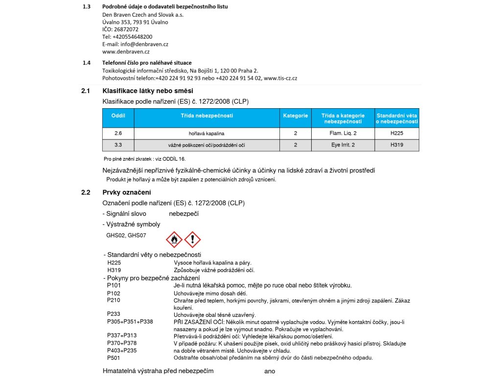 Výrobní společnost : | Den Braven Czech and Slovak a.s. |