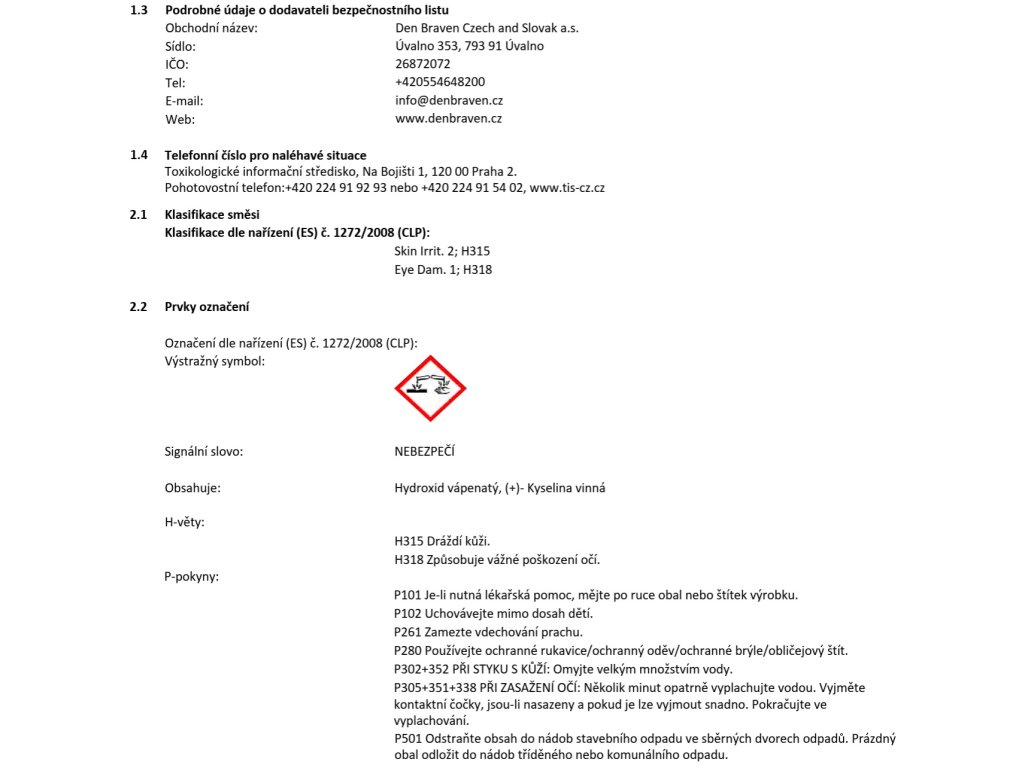 Výrobní společnost : | Den Braven Czech and Slovak a.s. |