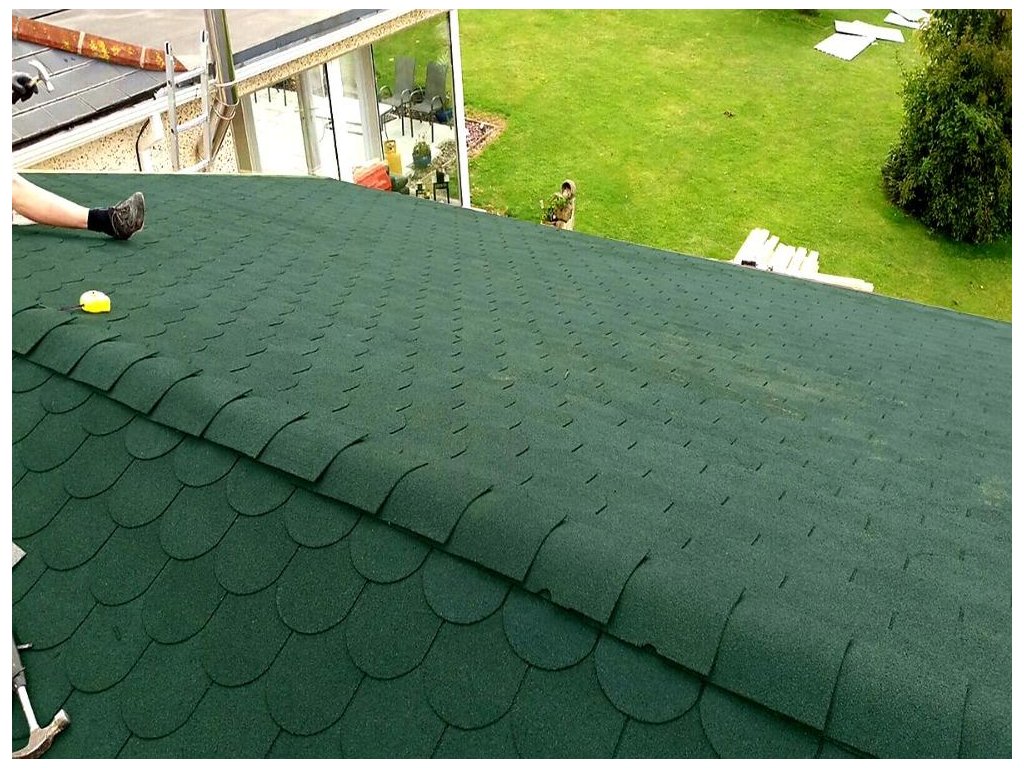 - Spodní strana s teplem aktivovanou celoplošně samolepicí / termolepicí vrstvou je opatřena ochrannou fólií, kterou je nutné před instalaci odejmout. Ideální základ pro pokládku těchto šindelů tvoří desky z OSB (desky s orientovanými vlákny), dřevěných prken nebo překližky. Nicméně lze využít i jiný materiál, který umožňuje zatloukání hřebíků.