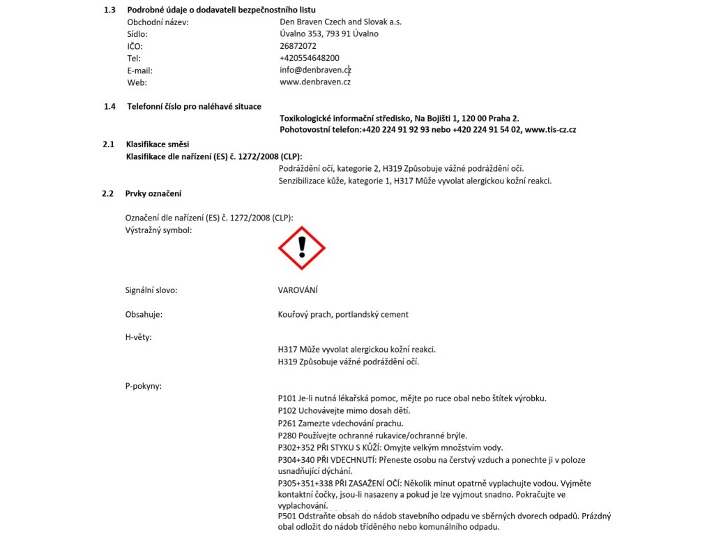 Výrobní společnost : | Den Braven Czech and Slovak a.s. |