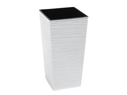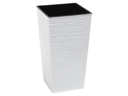 Květník, matný povrch, vroubkovaná struktura, bílý. Vyjímatelná plastová vložka v černé...
