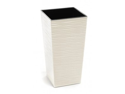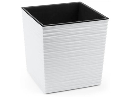 Květináč, samozavlažovací, vroubek, matný povrch, bílá barva. Vyjímatelná plastová vložka v černé...