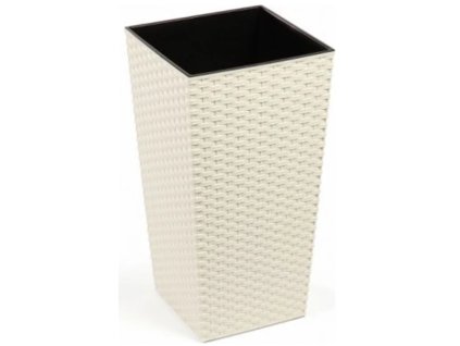Květináč, samozavlažovací, ratanový, matný povrch, krémový. Vyjímatelná plastová vložka v černé...